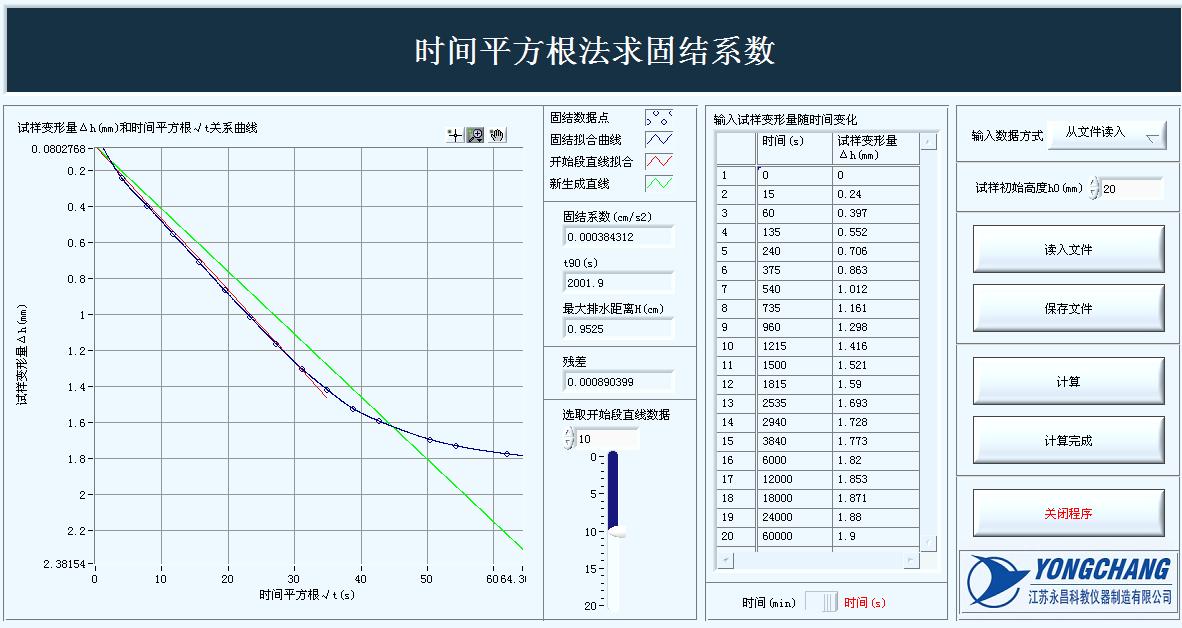 公司固結(jié)分析軟件V2.0發(fā)布更新。在原有基礎(chǔ)上增加了時間平方根法求固結(jié)系數(shù)的功能。
